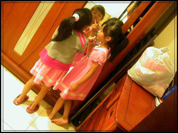 不會吧~出門前姊妹倆居然躲在我的更衣室偷擦我的唇蜜~