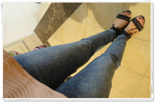 順路回娘家,和媽媽換了雙平底鞋,然後高跟鞋用手拎了回來~