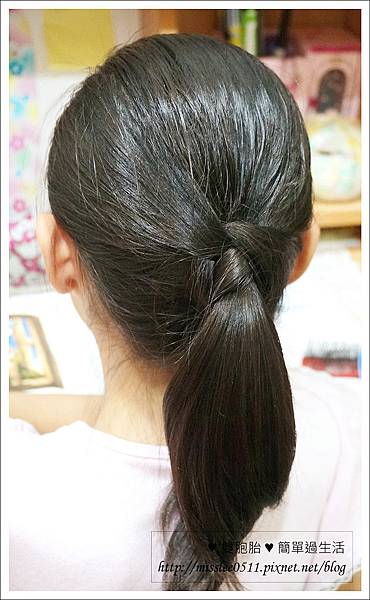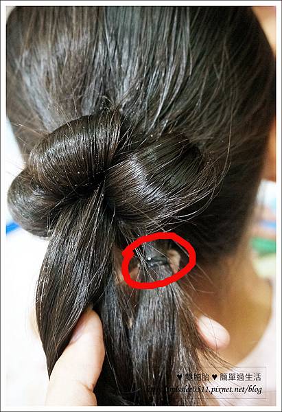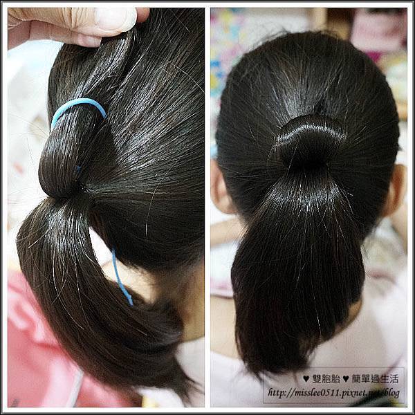 然後繞過馬尾…如果頭髮夠長,請繞個兩圈吧!!