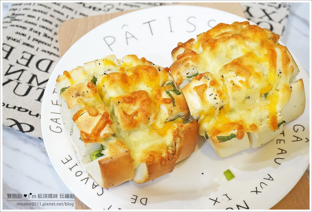 白饅頭吃起來很沒感覺,舖上滿滿的蔥花及香濃的焗烤…